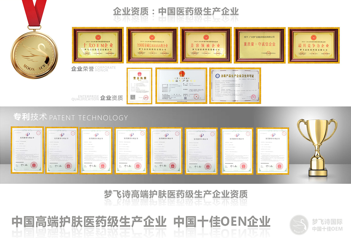 廣州夢飛詩醫藥科技有限公司(簡稱:夢飛詩)、占地2萬多平方米、是一家產品研發、生產、銷售、品牌策劃與市場營銷管理、國際學術交流為一體的大型股份企業、專業OEM/ODM/OBM為國內外客戶打造護膚高端品牌、發展至今、擁有中國個人護理品最完整、最豐富的產品品類、產品覆蓋日化線、專業線、電子商務、微商、電視購物、直銷等主流渠道、品牌客戶超過6000個,成就中國高端護膚品類研發、加工第一平臺!